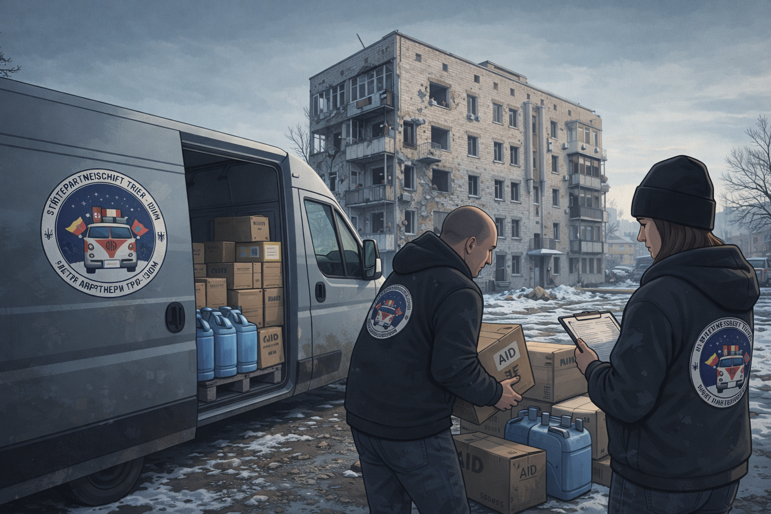Die Deutsch-Ukrainische Gesellschaft Trier organisiert seit Jahren echte Hilfstransporte in die Partnerstadt. Jede Fahrt bedeutet: begrenztes Budget, begrenzter Laderaum, echte Prioritäten.